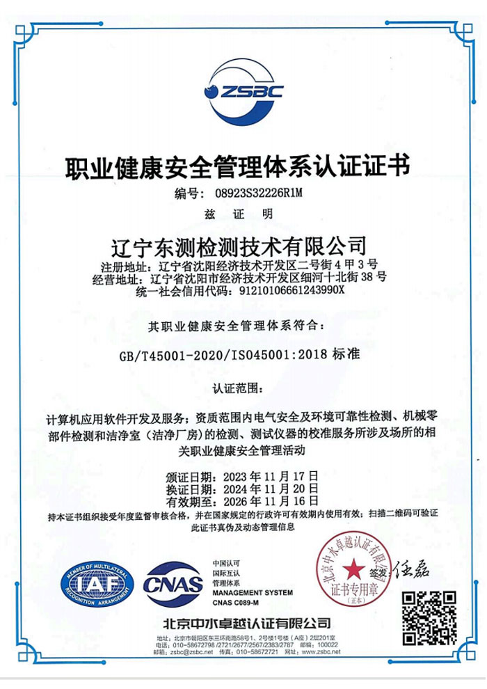 遼寧東測(cè)檢測(cè)技術(shù)有限公司成立于2007年6月21日,專注于為客戶提供計(jì)量、檢測(cè)以及技術(shù)咨詢與培訓(xùn)服務(wù)。